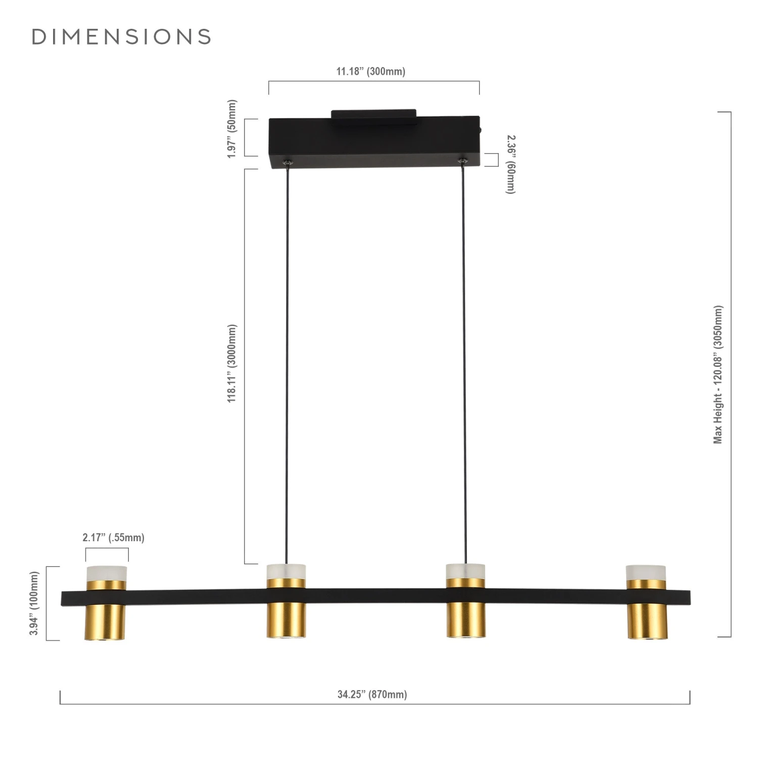 VONN LIGHTING VONN Artisan Ferro VMC34334BL 34″ Integrated LED ETL Certified Pendant, Height Adjustable Chandelier, Black