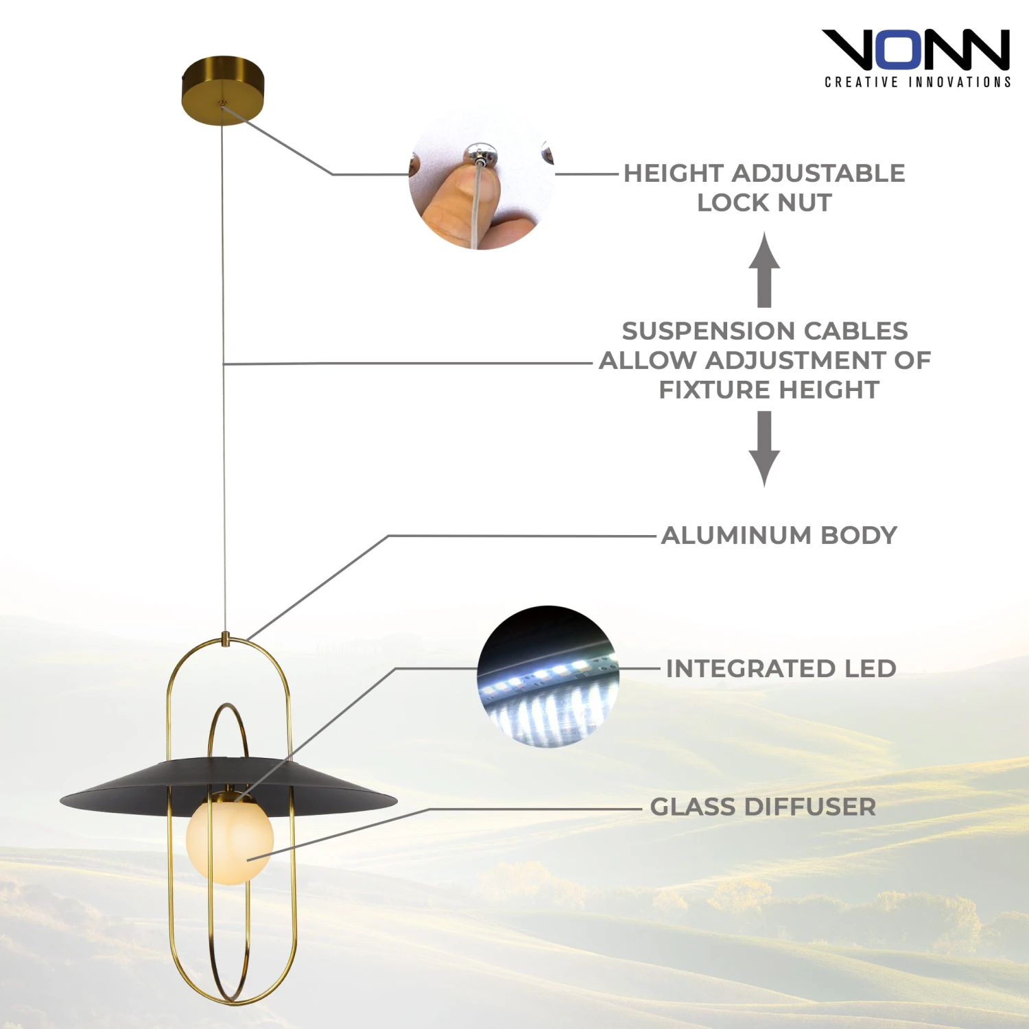 VONN LIGHTING VONN Artisan Lyra VAP2271AB 18″ Integrated LED ETL Certified Pendant Lighting Fixture In Antique Brass