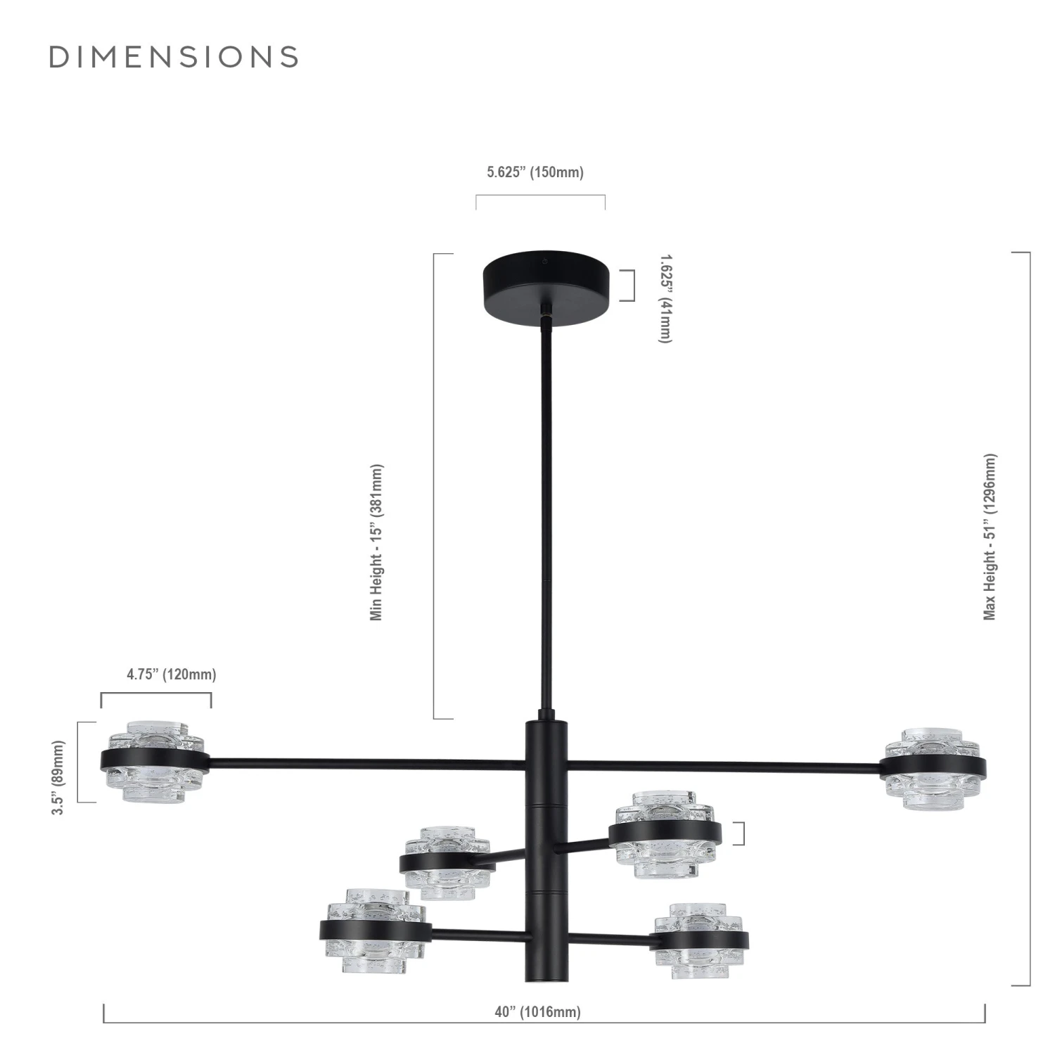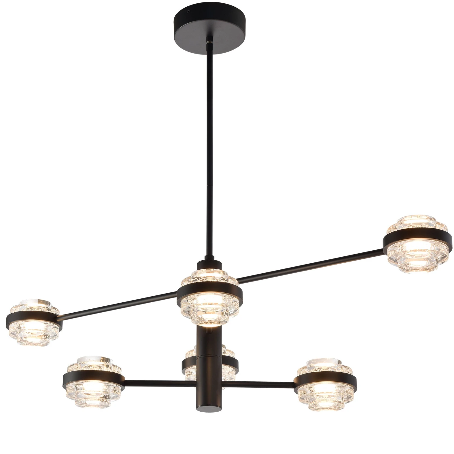 This modern chandelier is a masterpiece of contemporary design, boasting a sleek black finish that adds a touch of sophistication and drama to any space. The chandelier features six integrated LED lights that provide both functional illumination and a captivating ambiance. With height-adjustable rods, this fixture offers flexibility in installation, allowing it to be tailored to fit the unique dimensions of any room. The attention to detail in the design, from the clean lines to the flawless finish, is evident in every aspect of this chandelier. It is a perfect addition to any high-end interior design setting, making a bold statement and elevating the aesthetic of any room. The Milano VAC333RD6BL 40″ 6-Light Integrated LED Chandelier embodies our commitment to providing top-quality, sophisticated lighting solutions for discerning customers who appreciate modern design and unparalleled craftsmanship.