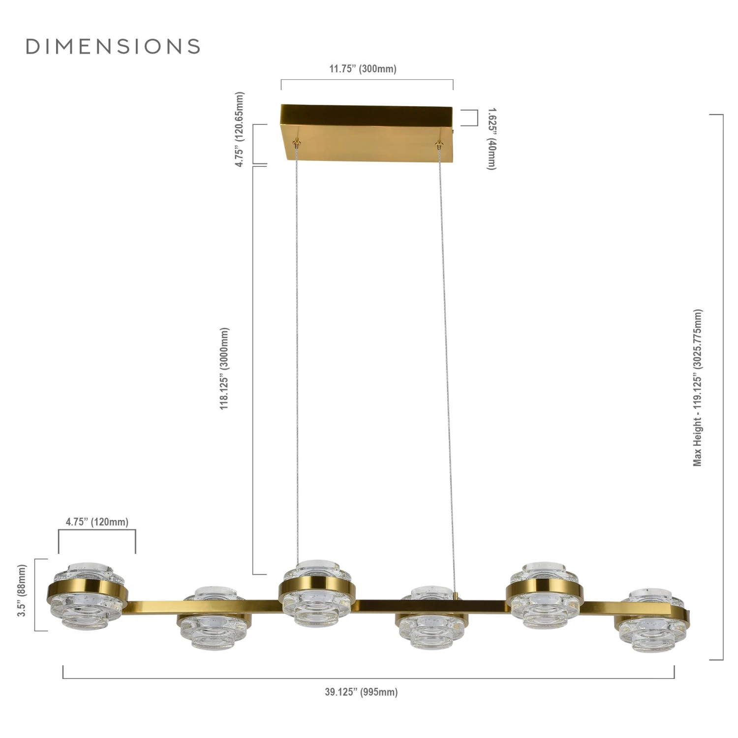 VONN LIGHTING VONN Artisan Milano VAC3LN336AB 39″ Integrated LED ETL Certified Pendant, Height Adjustable Chandelier, Antique Brass
