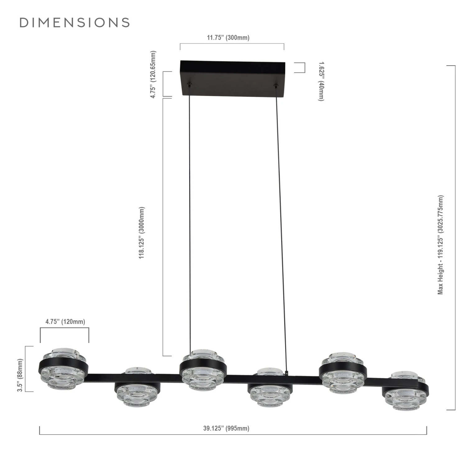 VONN LIGHTING VONN Artisan Milano VAC3LN336BL 39″ Integrated LED ETL Certified Pendant, Height Adjustable Chandelier, Black