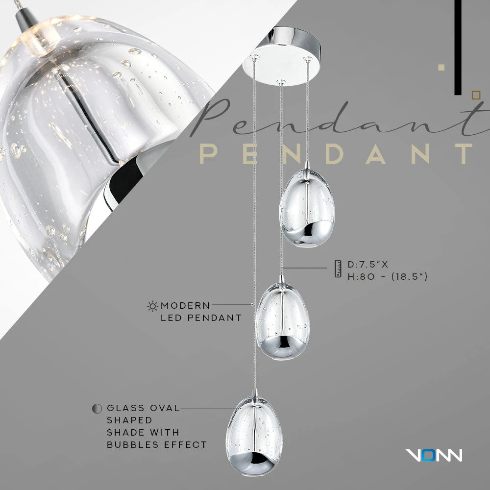 VONN LIGHTING VONN Artisan Venezia VAP2203CH 3-Light Integrated LED ETL Certified Pendant, Height Adjustable Chandelier, Black