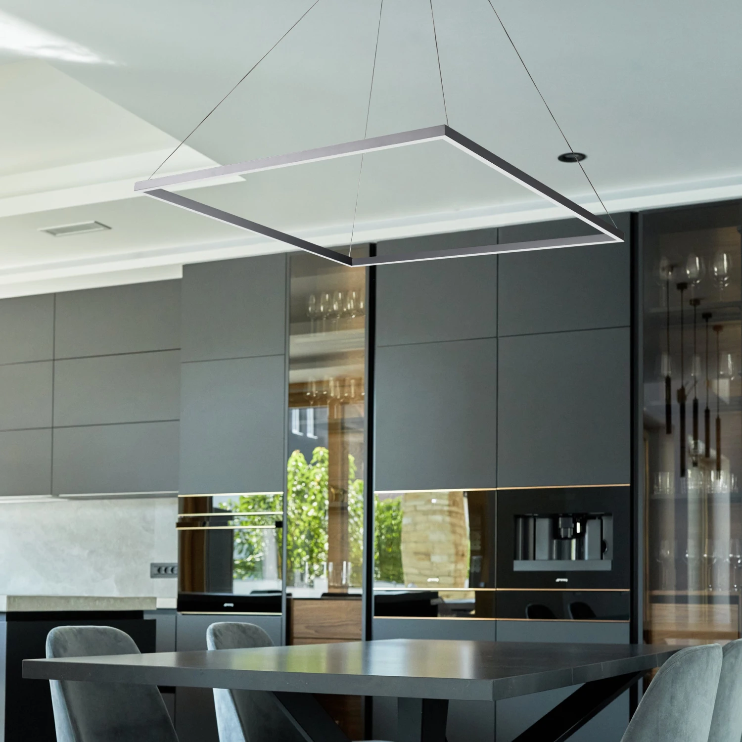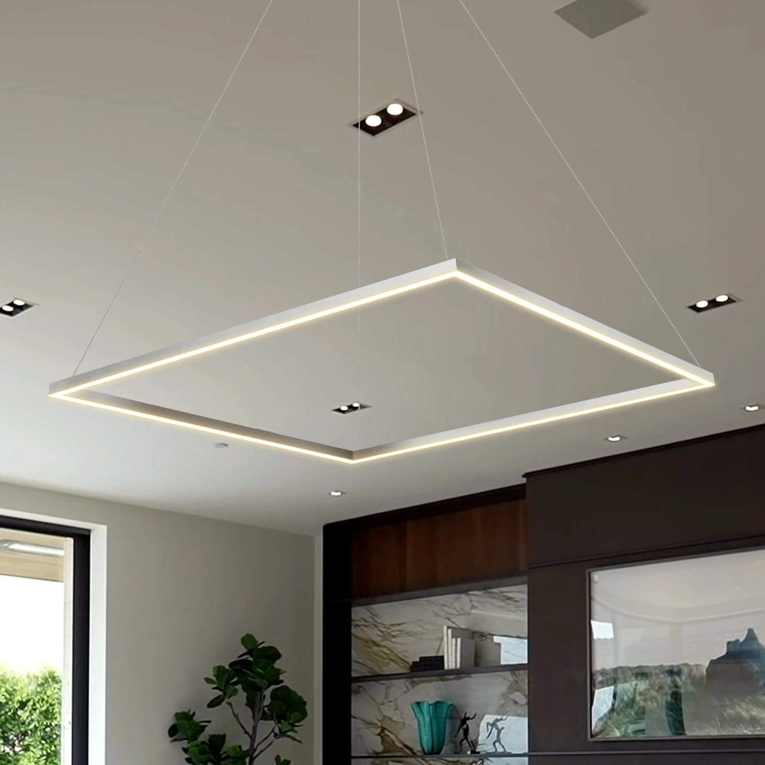 VONN LIGHTING VONN Atria VMC35511AL 39″ ETL Certified Integrated LED Square Chandelier, Height Adjustable Pendant In Silver