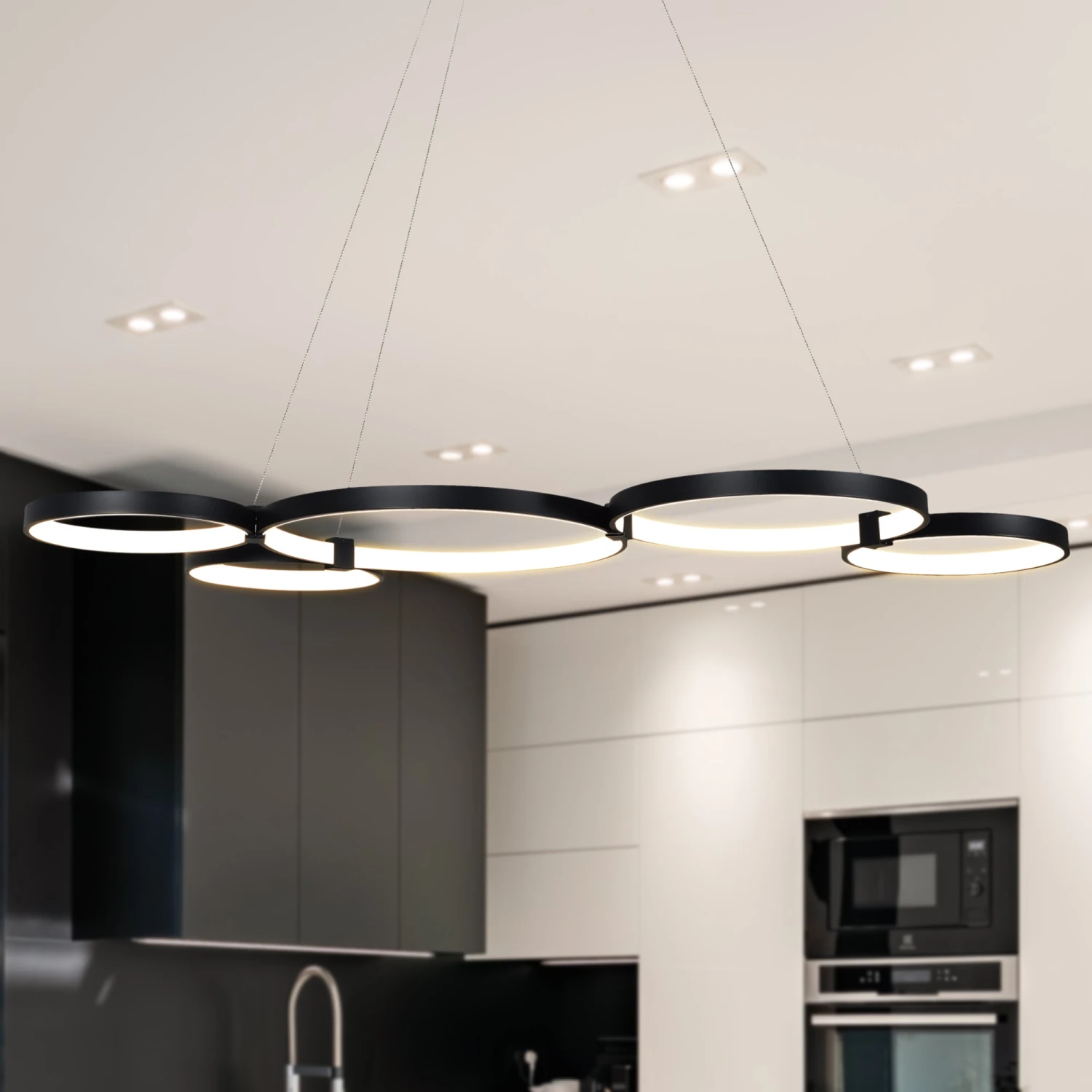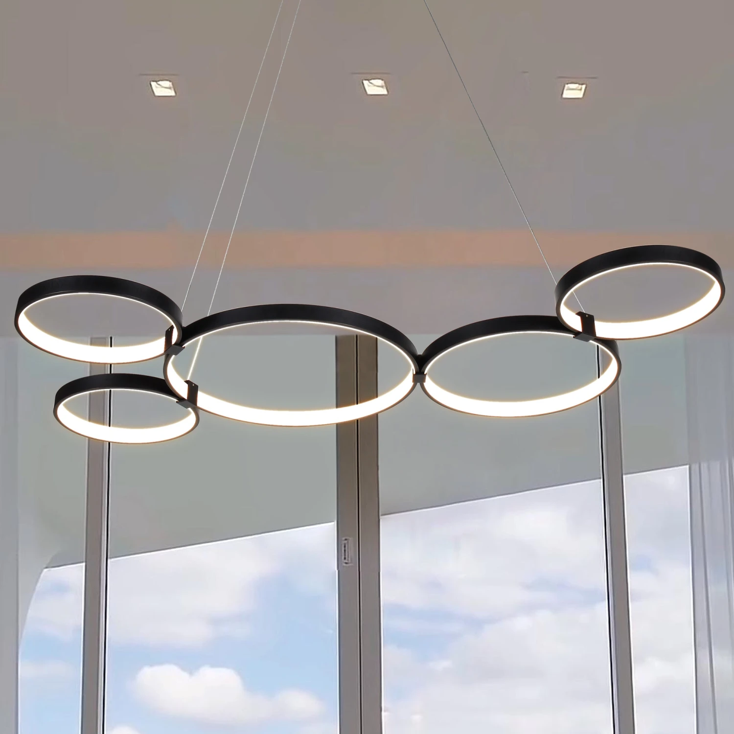 VONN LIGHTING VONN Capella VMC32410BL 50″ Integrated LED ETL Certified Chandelier Height Adjustable Ring Pendant In Black