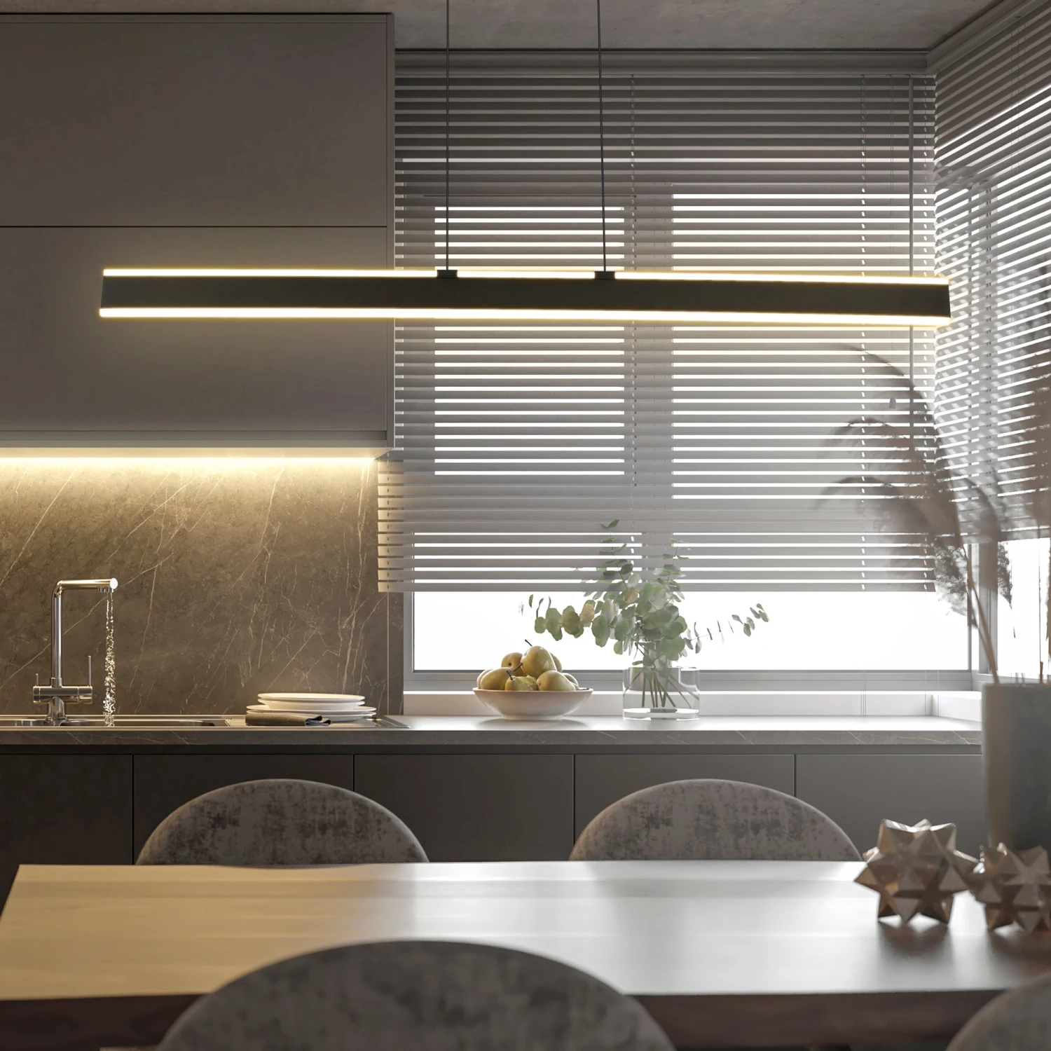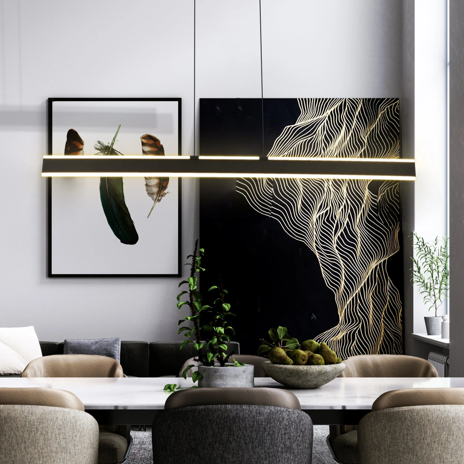 Ambience is defined by the character and atmosphere of a place. Therefore, to create mood is to be diligent with our surroundings – both objects and persons. The Wezen collection by VONN lighting speaks to this diligence, with indirect yet prominent lighting for the room.